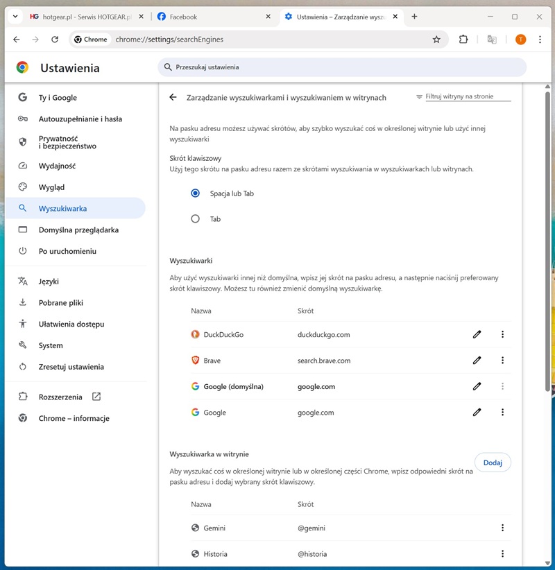 Własne skróty do wyszukiwarek i serwisów