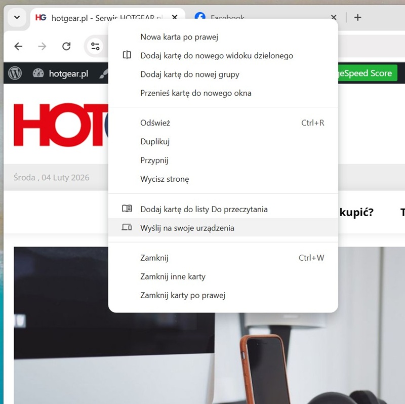 Google Chrome umożliwia łatwe wysyłanie kart na inne posiadane urządzenia. Grafika HotGear.