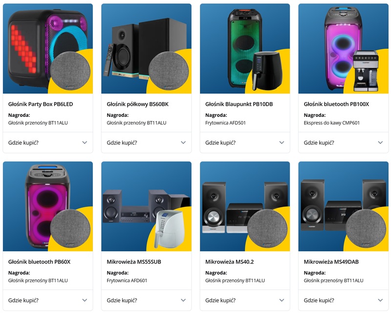 Przykładowe produkty i nagrody objęte promocją. Fot. Blaupunkt.